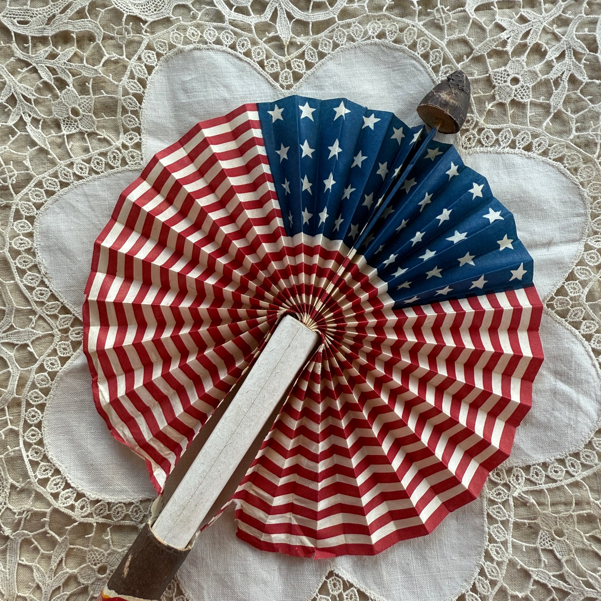 American flag design, pulls open. Light wear as shown. Marked Made in Japan.